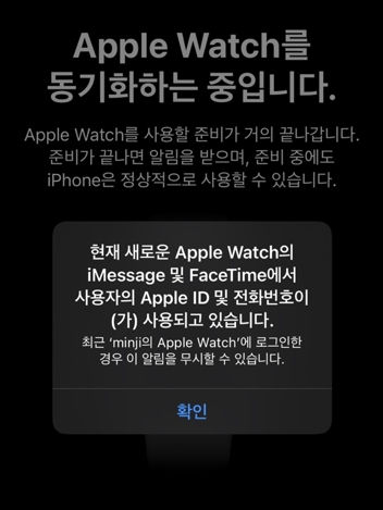 ✔ 현재 새로운 Apple Watch의 iMessage 및 FaceTime에서 사용자의 Apple ID및 전화번호이(가) 사용되고 있습니다.