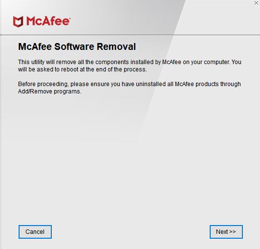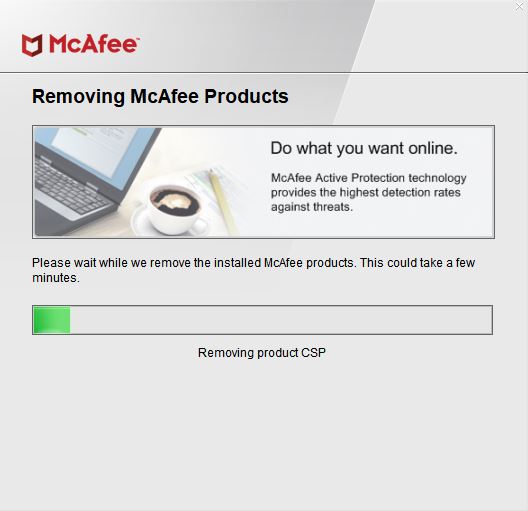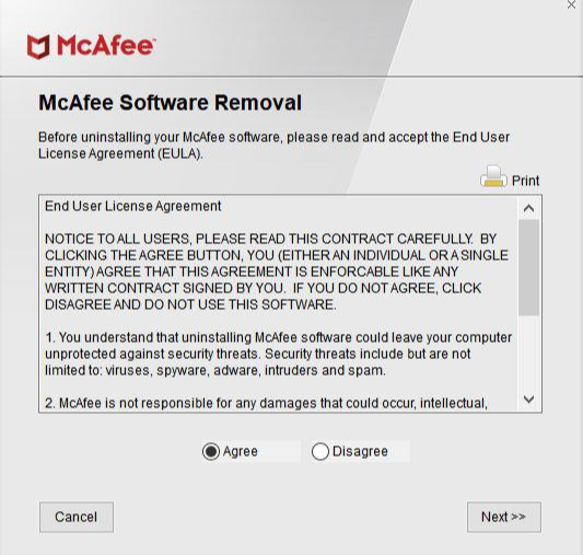 McAfee 소프트웨어 제거 화면에서 다음을 수행합니다.