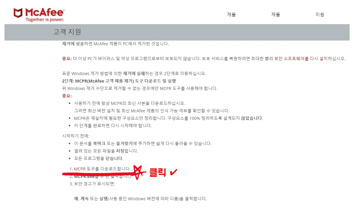 McAfee 삭제 해결방법