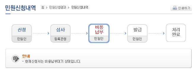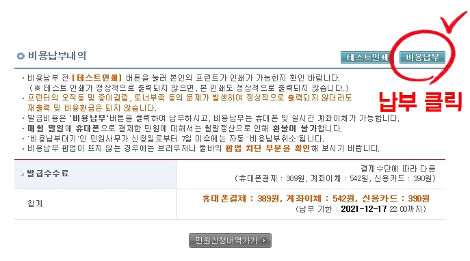 테스트인쇄 > 비용납부 > 발급