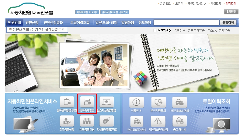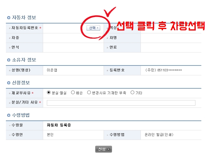 검색엔진에 "자동차등록증 재발급" 입력하면