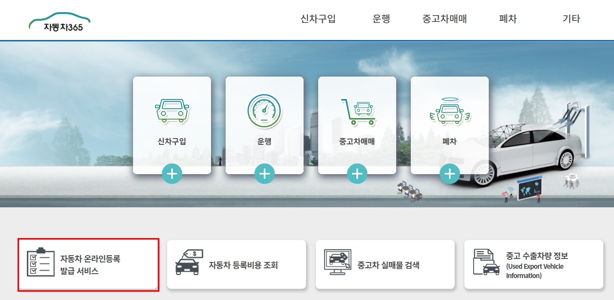 [자동차 온라인 등록 발급 서비스] 선택하면 새 페이지 화면으로 이동