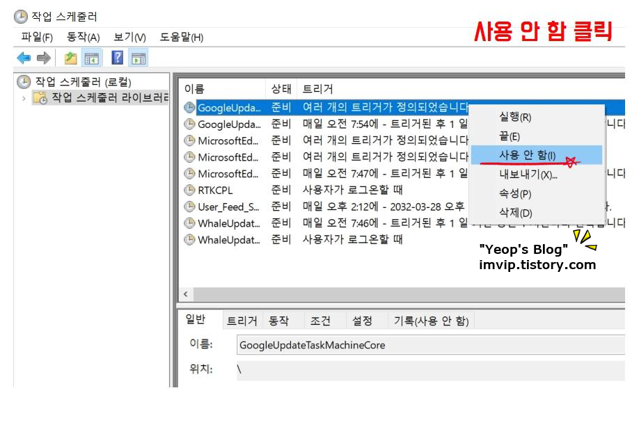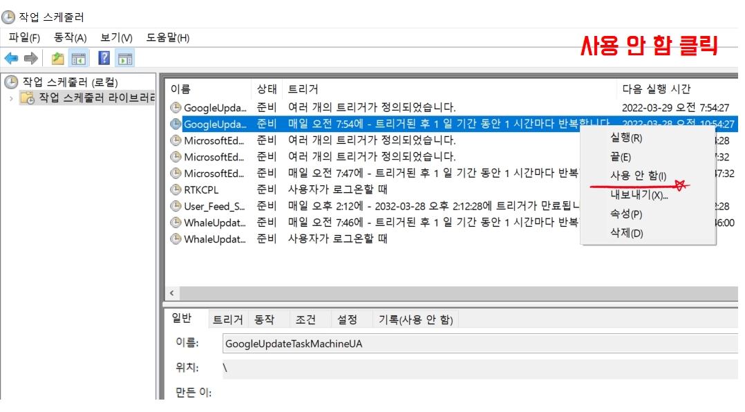 첫째, 윈도우 작업 스케줄러 크롬 비활성화