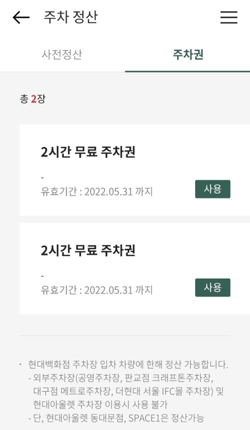⭕ 현대백화점 무료주차권이랑 중복 가능