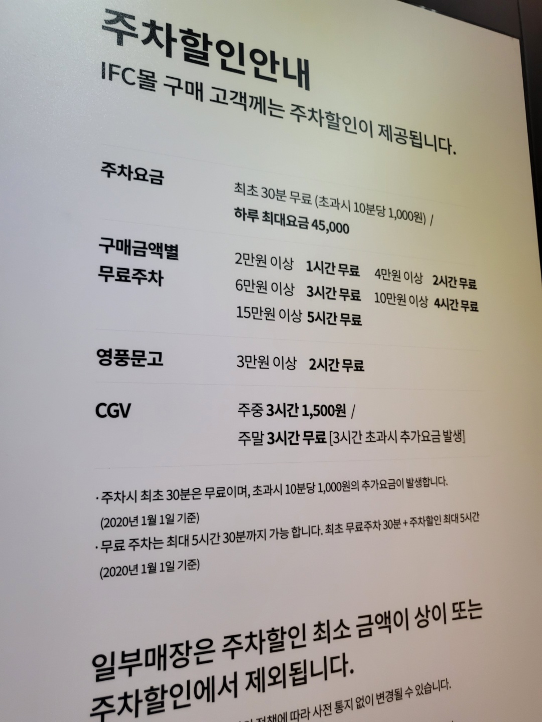 영수증으로 인정받을 수 있는 무료주차 시간 3시간이 넘어가게 되면 아무리 많은 금액을 써도 주차비용이 발생하게 된다.