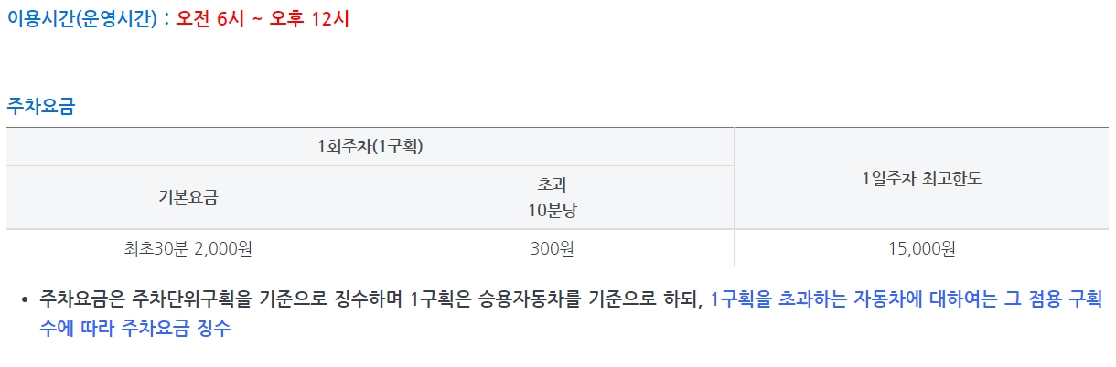 ⭕ 일일 제한 요금이 없고 주차한 시간만큼 요금이 부과된다.