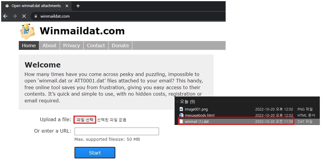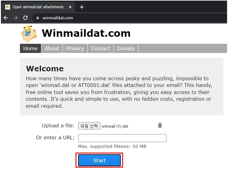 1. winmaildat 무료 뷰어사이트에 접속합니다.