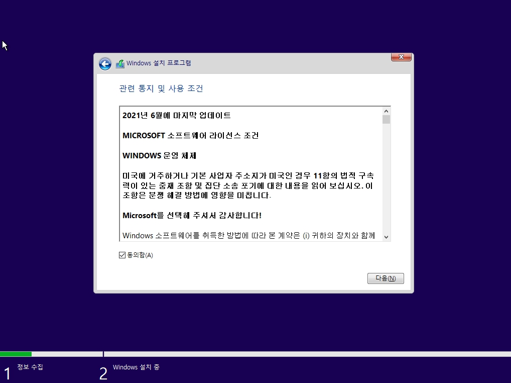 5. 동의함 체크 후 [다음] 버튼 클릭