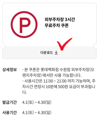 수원 롯데몰 무료주차 할인 쿠폰 발급 받기