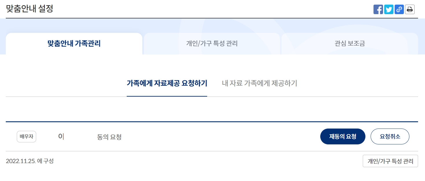 3) 맞춤안내 가족관리에서 가족에게 자료제공 요청
