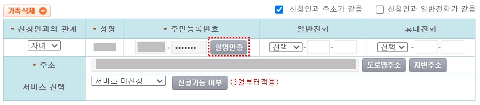 8. 가족정보 실명인증 클릭