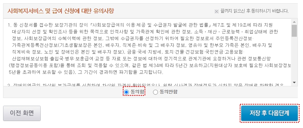 12. [동의함] 클릭 후 [저장 후 다음 단계]