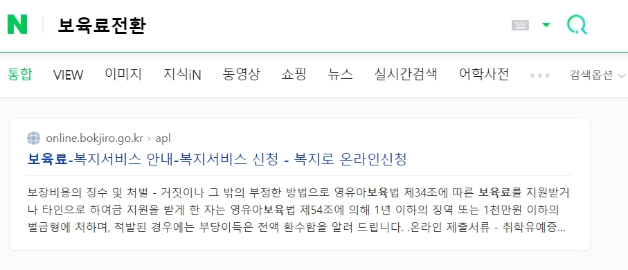 1. 포탈사이트에 보육료전환 검색