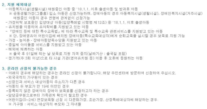 "보육료 지원내용 및 대상"