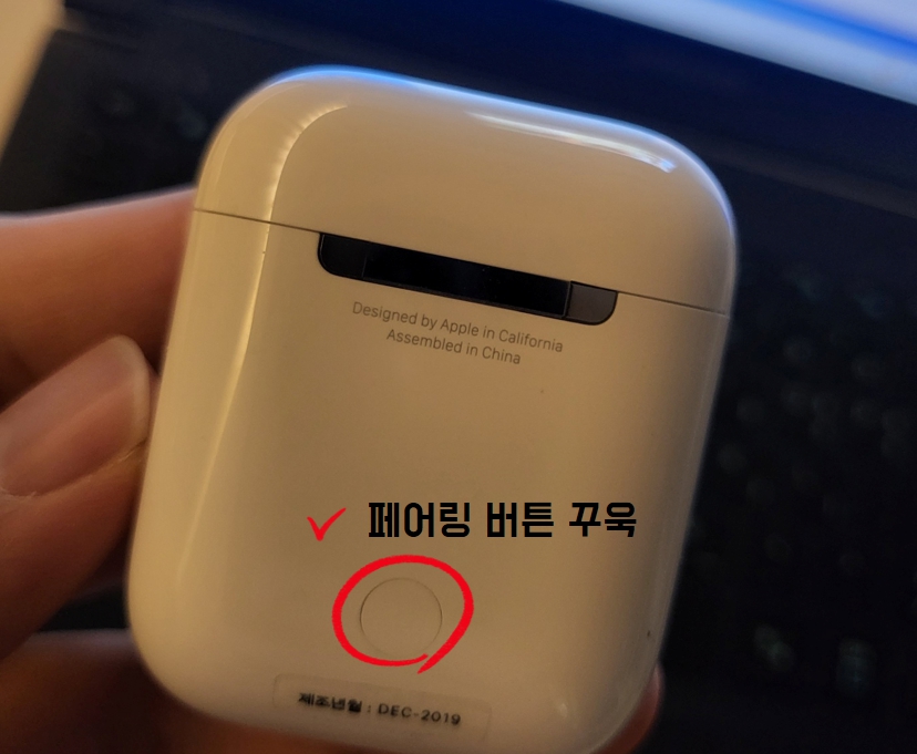 3) 에어팟 페어링 버튼을 5초 이상 길게 눌러줍니다.