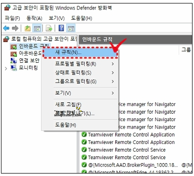 [인바운드 규칙] 오른쪽마우스 클릭 후 [새 규칙] 선택