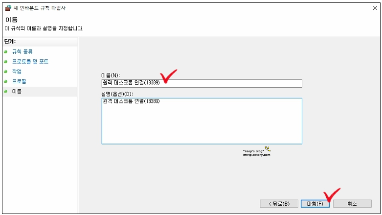 4. 이름 기재 후 [마침]