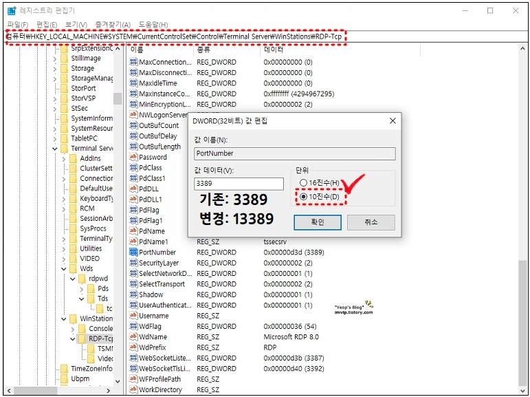 첫째, 레지스트리에서 기존(3389) 포트넘버 변경하기