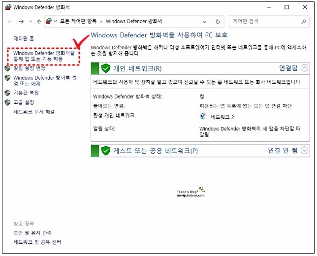 2. [Windows Defender 방화벽을 통해 앱 또는 기능 허용] 선택