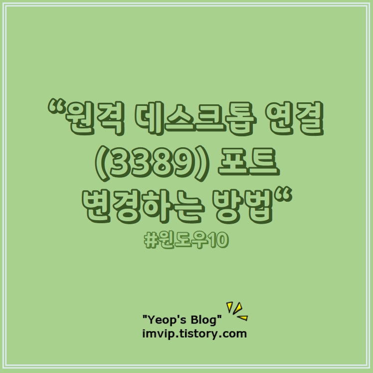 원격 RDP 기본포트인 3389는 잘 알려진 포트이기 때문에 외부에서 접속 시도를 하거나 해킹 시도 등에 노출될 가능성이 많습니다. 그렇기 때문에 포트 번호를 변경하는 것을 권장합니다.