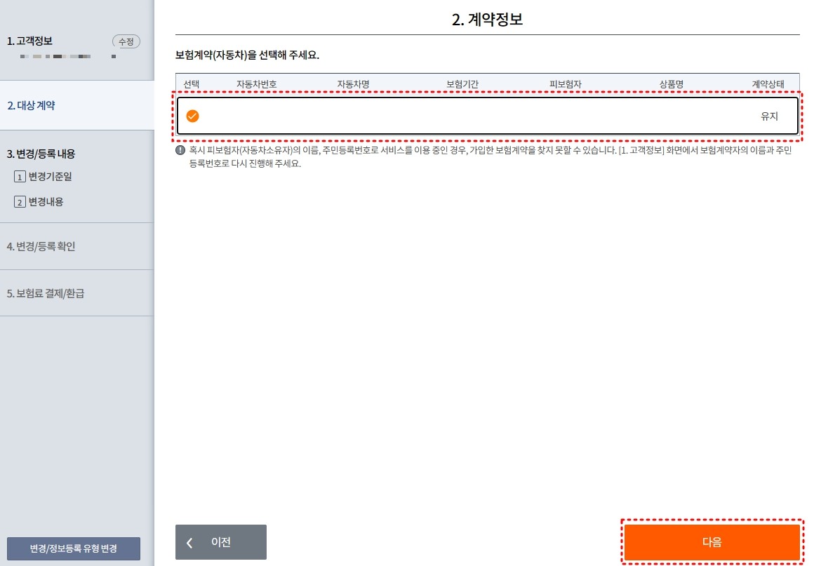 1. 삼성화재 다이렉트 로그인 후 자동차 계약 변경 클릭