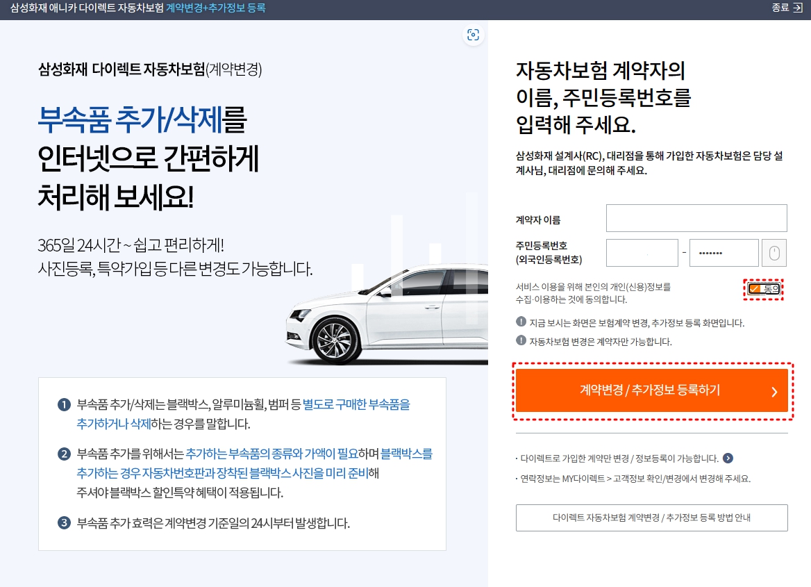 동의 체크 후 [계약변경/추가정보 등록하기] 클릭