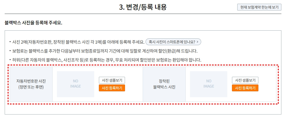 블랙박스 사진이 없으면 특약가입이 안됩니다.