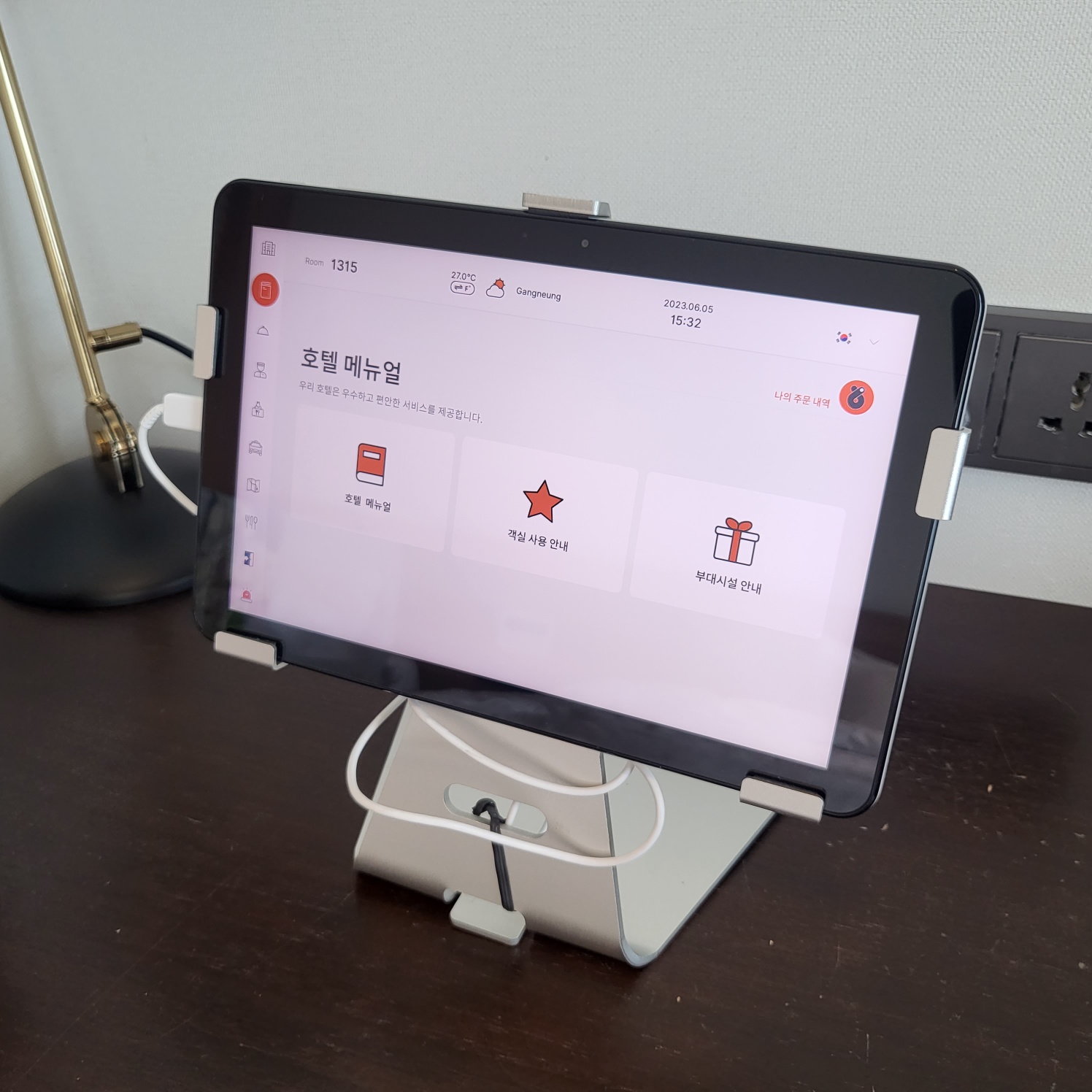 필요한 물품(수건, 생수 등 기타 용품)을 따로 전화요청하지 않고 터치 몇 번으로 주문이 가능했습니다.