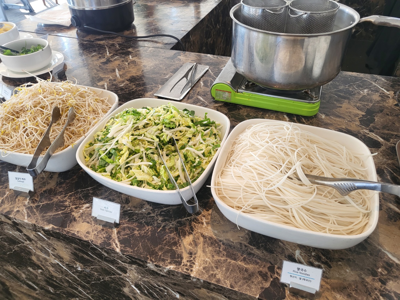 창가자리가 다행히 하나 남아있어 푸른 동해바다 뷰를 감상하며 아침식사를 할 수 있어 정말 좋았습니다.