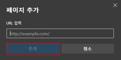 3. 페이지 추가에 URL 입력 후 [추가] 버튼 클릭
