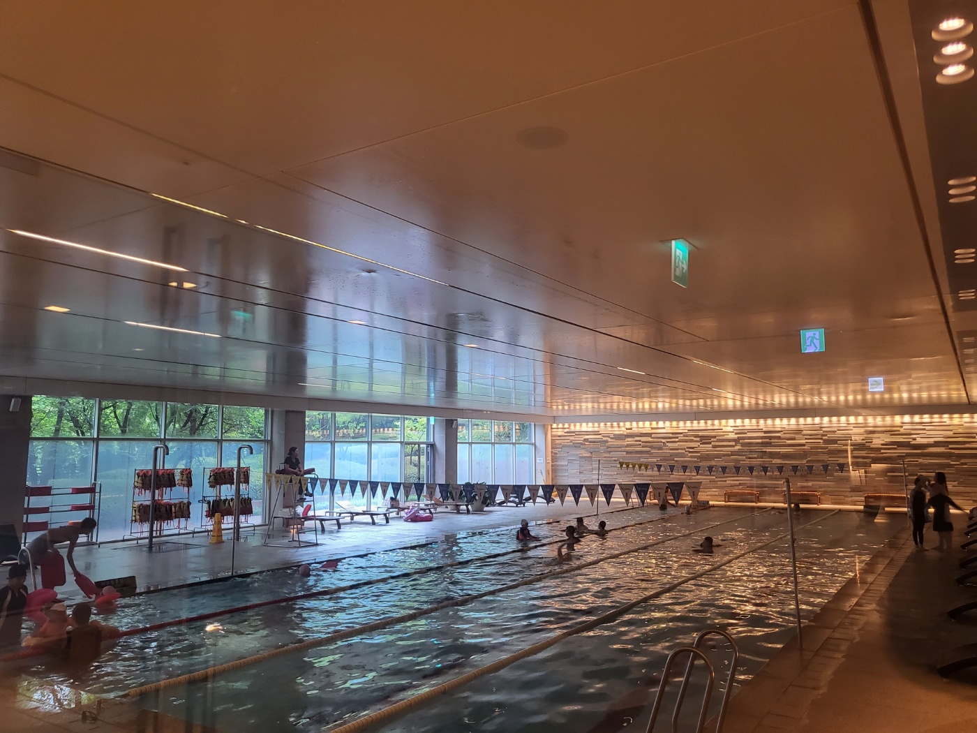 왼쪽 끝 1 레인은 아이들이 놀 수 있는 깊이2,3,4 레인은 성인 물높이로 나뉘어 있습니다.