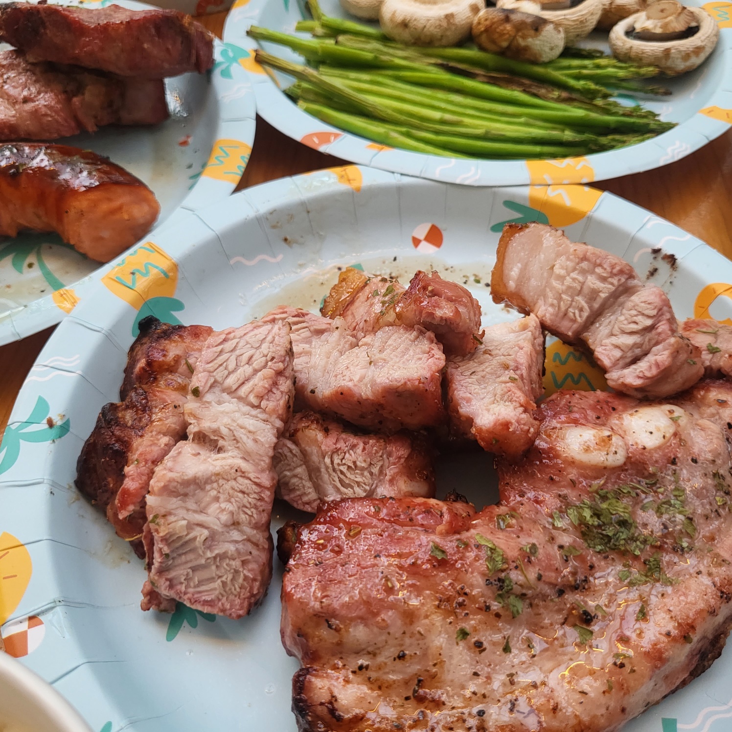 숯의향이 은은하게 나고 고기가 딱 먹기 좋게 익었습니다.