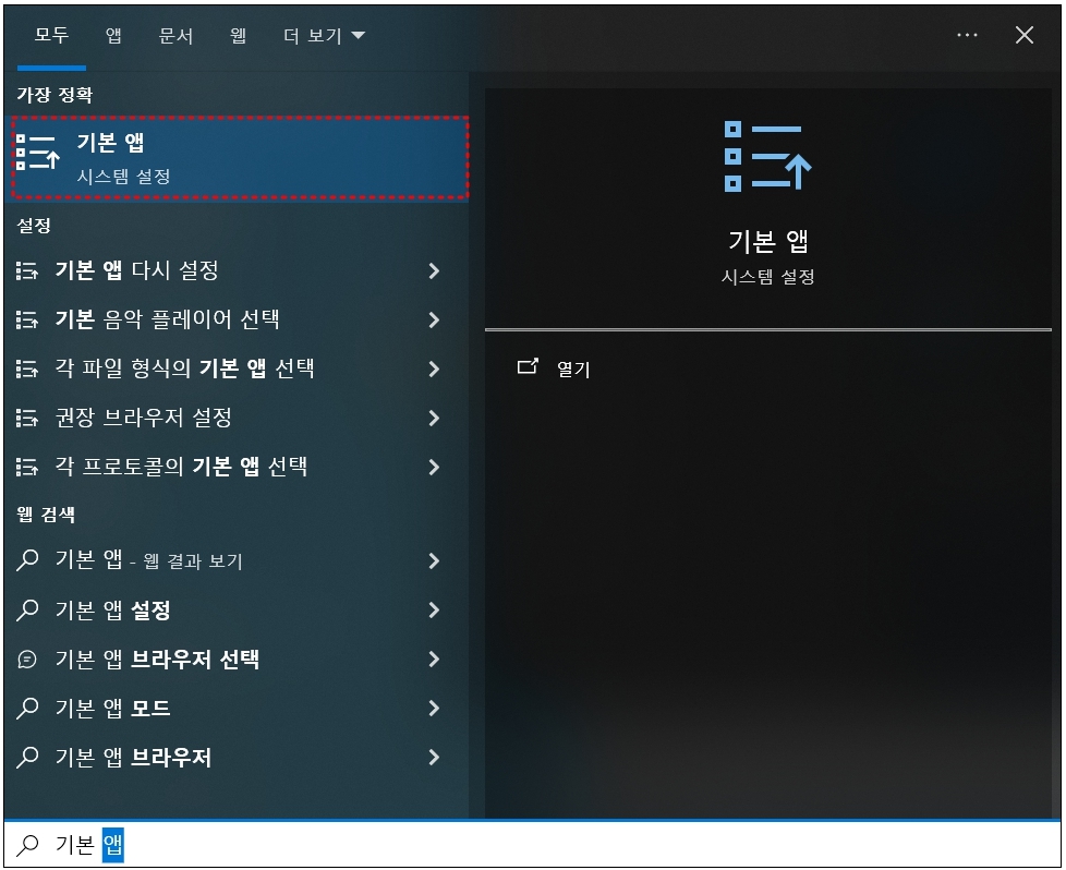 윈도우 하단 검색창에 [기본 앱] 으로 검색
