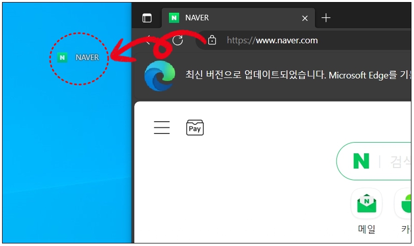 하지만 웹페이지를 들어가는 단계까지도 단축시킬 수 있는 게 바탕화면 바로가기입니다.
