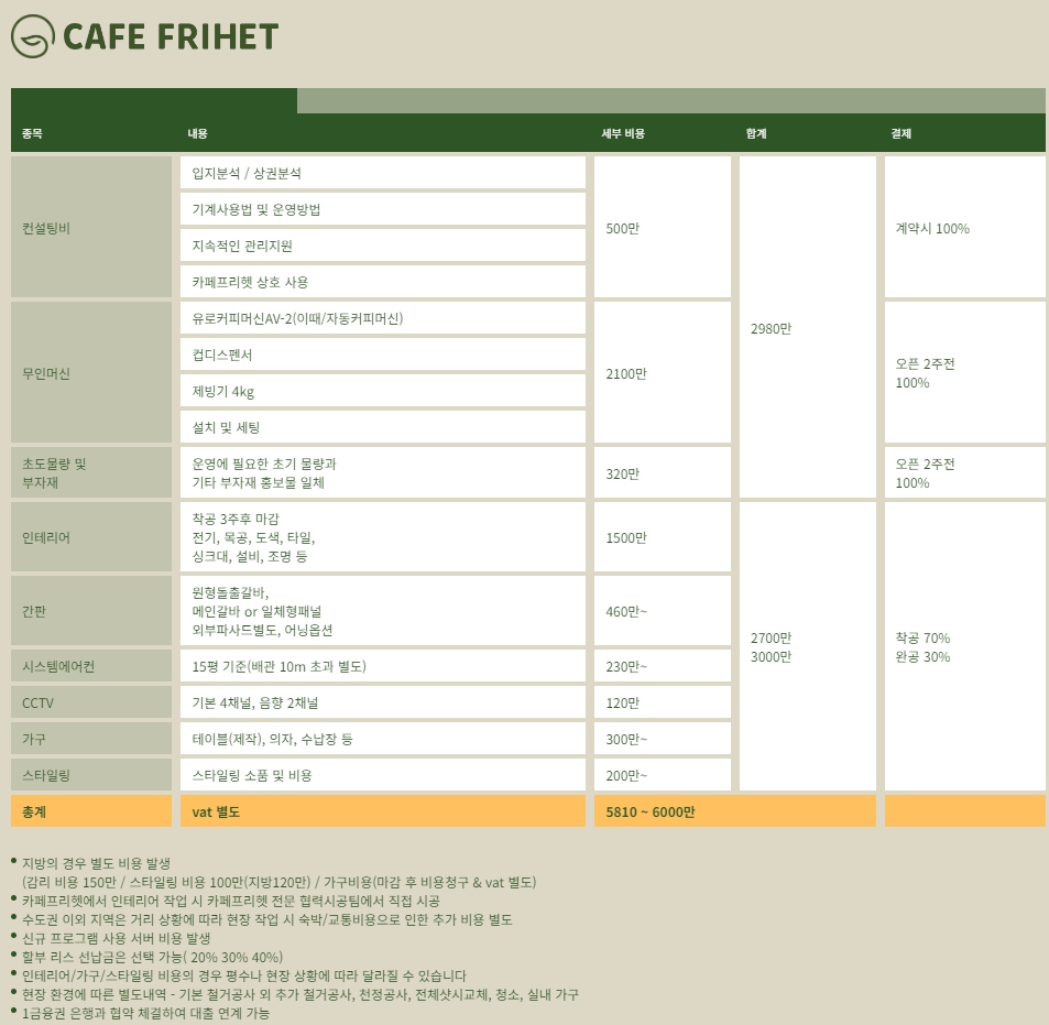 - 본사에서 상권조사, 인테리어 및 시설설비 공사 진행(초반 경영의 어려움이 개인에 비해서는 수월함)