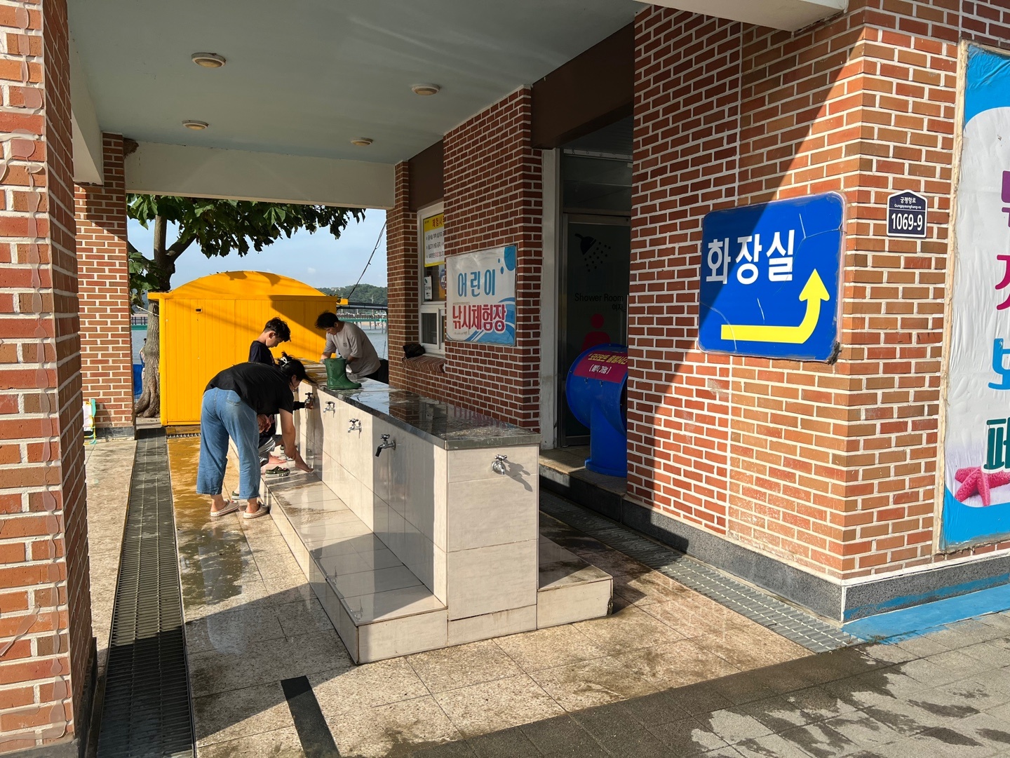 드디어 씻는 곳 발견...!! 갯벌에서 더러워진 손과 발을 제대로 씻을 수 있어 좋았습니다.