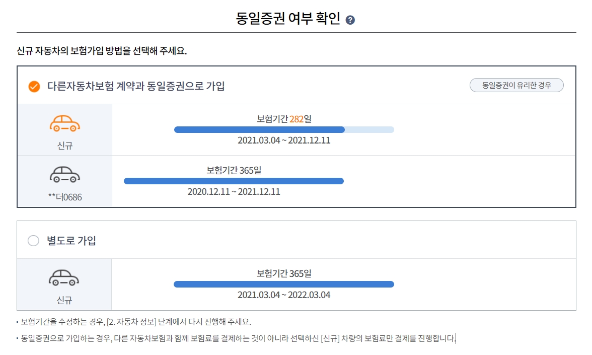 ※ 해당차량의 보험가입사와 피보험자가 모두 동일 해야되며 모든 차량의 보험기간 만료일도 동일하도록 설정해야 한다.