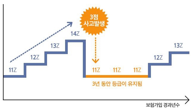 사고내용별 점수가 있으며 그 점수에 따라 적용 됩니다. 예를들면 대인사고>부상사고>1급 이면 4점