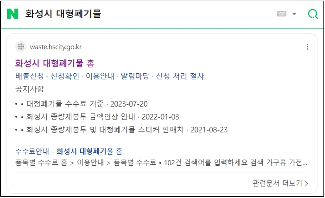 1. 지역 + 대형폐기물 키워드로 검색(예시: 제주 대형페기물, 대전 대형폐기물, 부산 대형폐기물, 수원 대형폐기물 등등)
