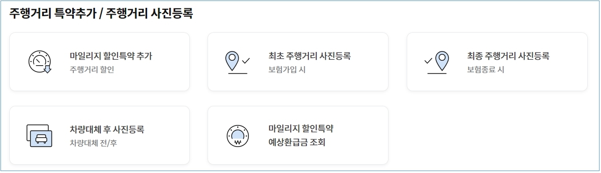 2. 계약관리 > 자동차보험 계약 변경 > 마일리지 할인 특약 추가