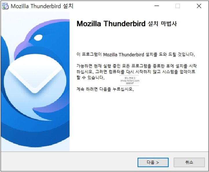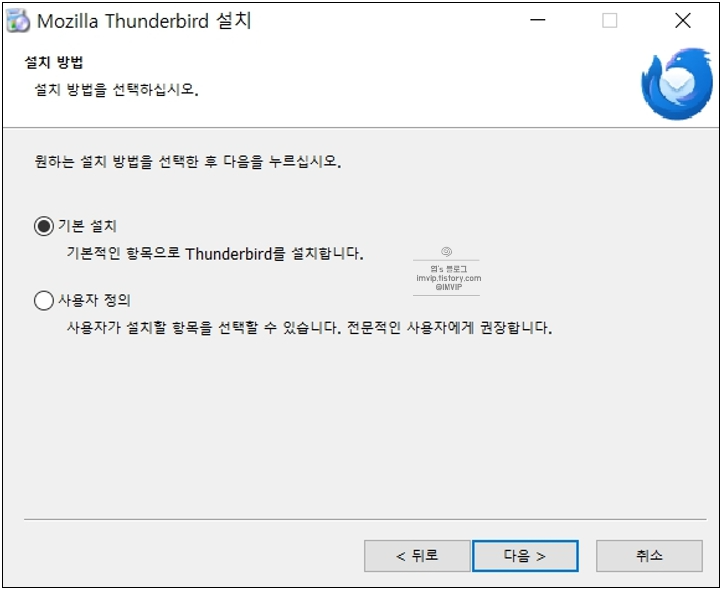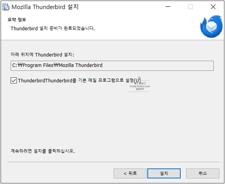 기본설치에 기본 메일 프로그램으로 설정을 체크 후에 설치를 진행해 주시기 바랍니다.