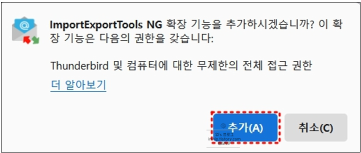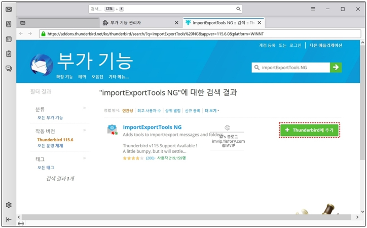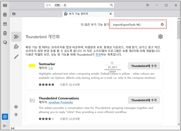 부가 기능 및 테마 선택 후 "importExportTools NG" 입력 후 검색