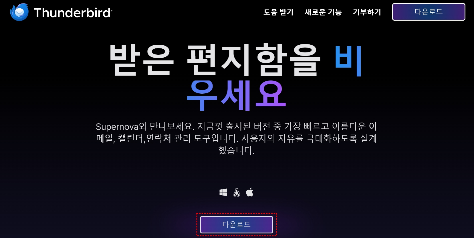 1. 검색엔진 "모질라 썬더버드" 키워드 검색 후 사이트 접속 > 설치파일 다운로드