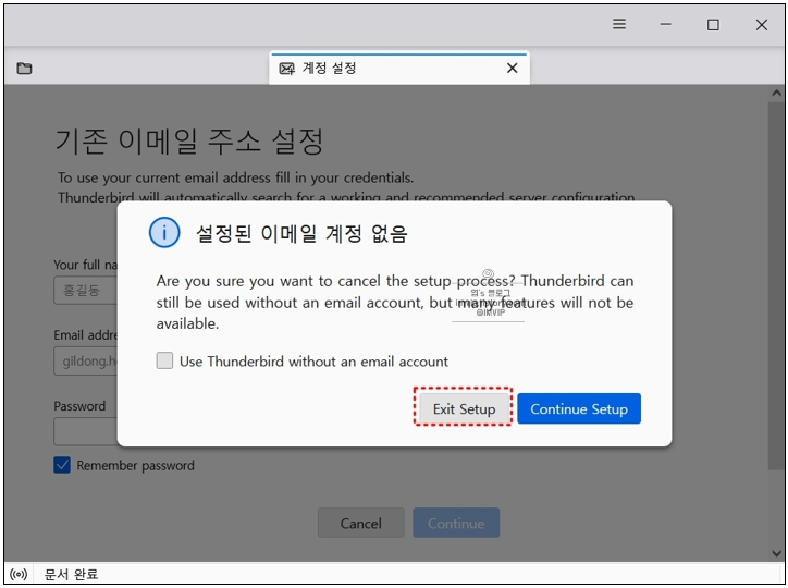 1. 기존 이메일 주소 설정 PASS 하기 > Cancel > Exit Setup