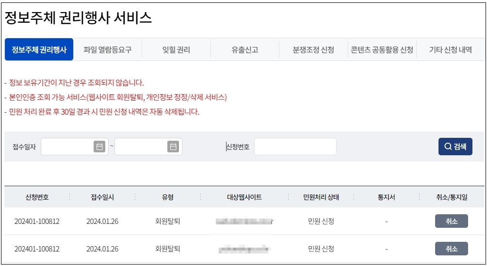 민원 처리 시 불이익, 관련 정보 부정확 이런 사이트는 직접 사이트 접속하여 탈퇴를 진행하는 게 좋아 보입니다.