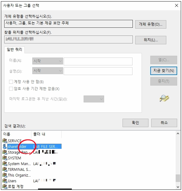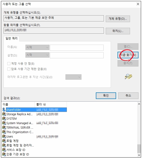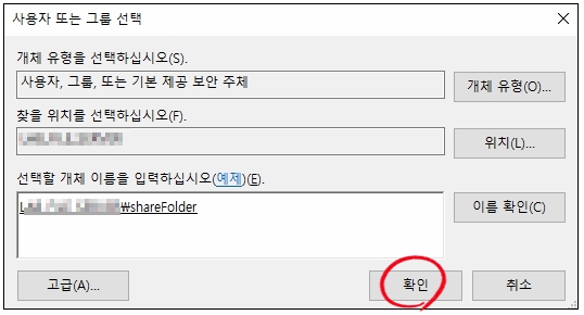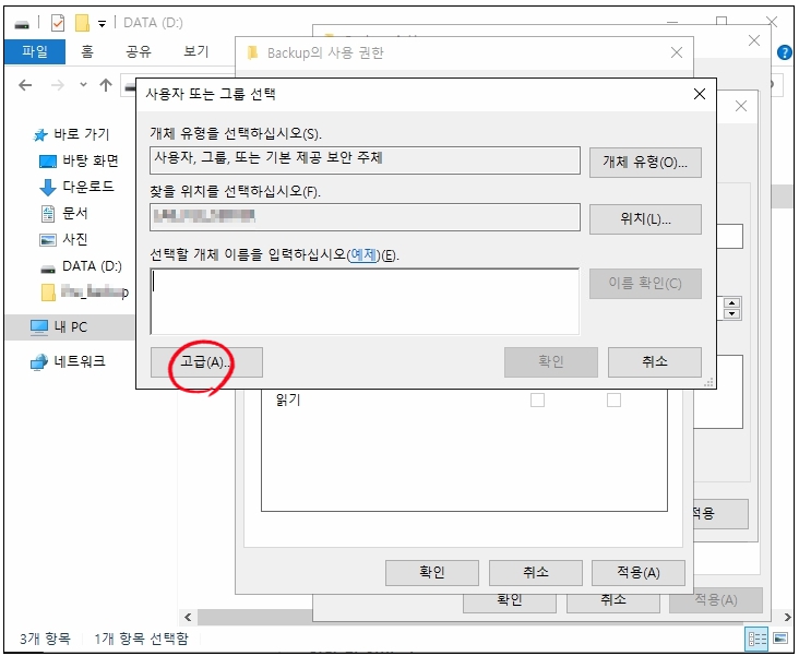 4. 사용자 또는 그룹 선택 화면에서 [고급]
