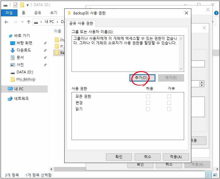 3. 공유 사용 권한 [추가] 버튼 클릭