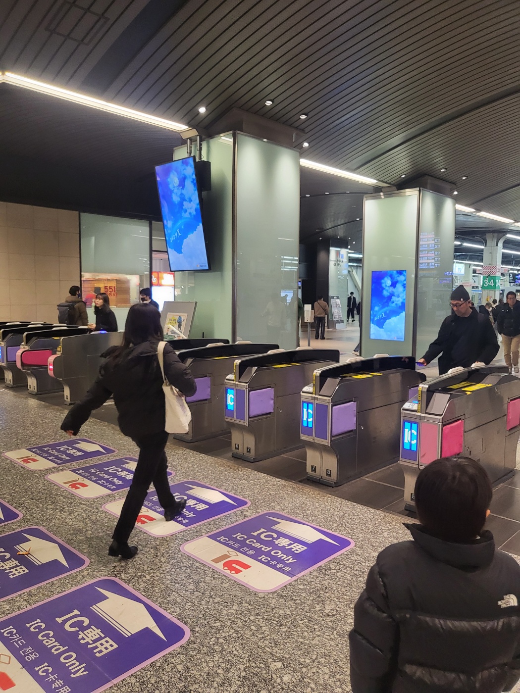 티켓을 넣고 개찰구를 통과합니다. (반환된 티켓은 꼭 챙기세요!)