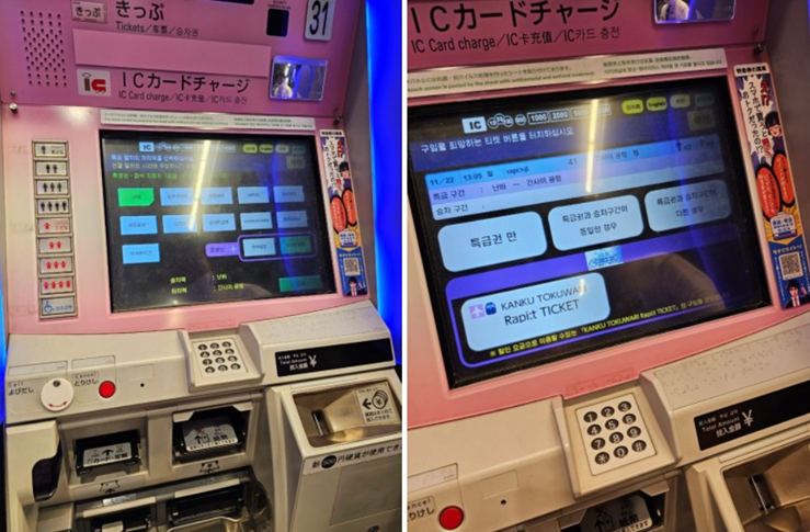 무인발권기는 한국어 지원이 되니 조작하는데 어렵진 않습니다.
