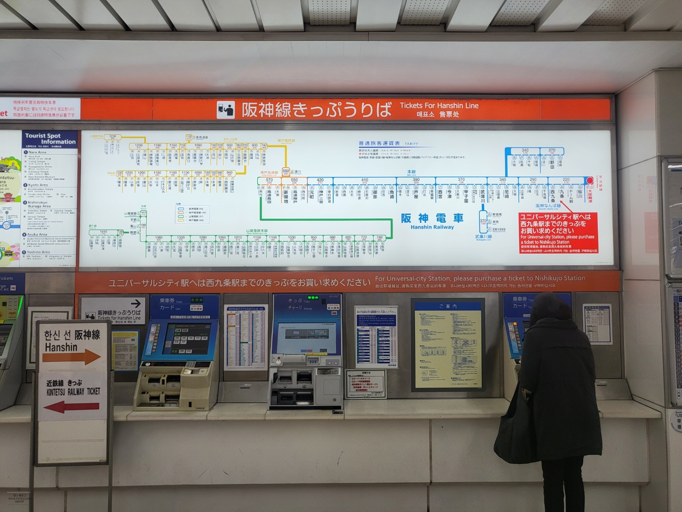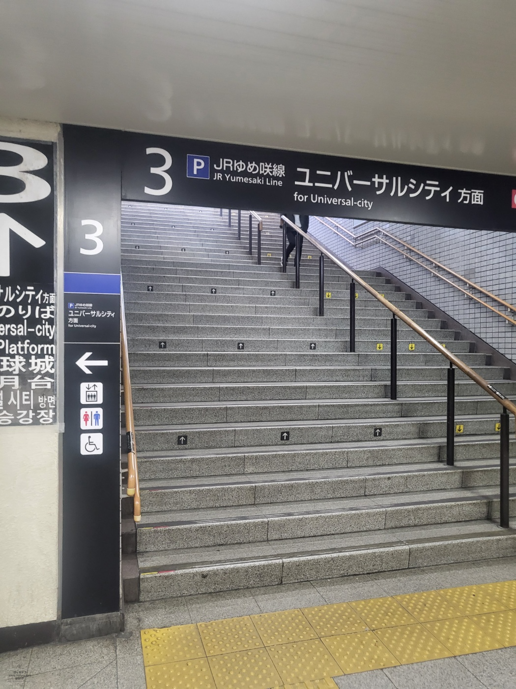 니시쿠조행(For Nichikujo)이라고 나오며 기둥에서도 유니버셜 가려면 니시쿠조역에서 내리라는 안내문도 있습니다.